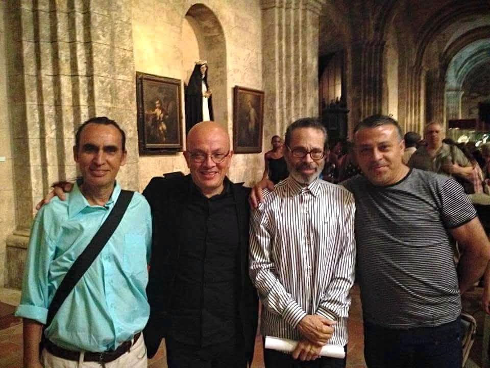 Photo taken in 2013 at the Basilica de San Francisco de Asís in Havana, Cuba, at a festival dedicated to his work and career.Juan Piñera, Eddie Mora, Leo Brouwer, and Marvin Camacho.